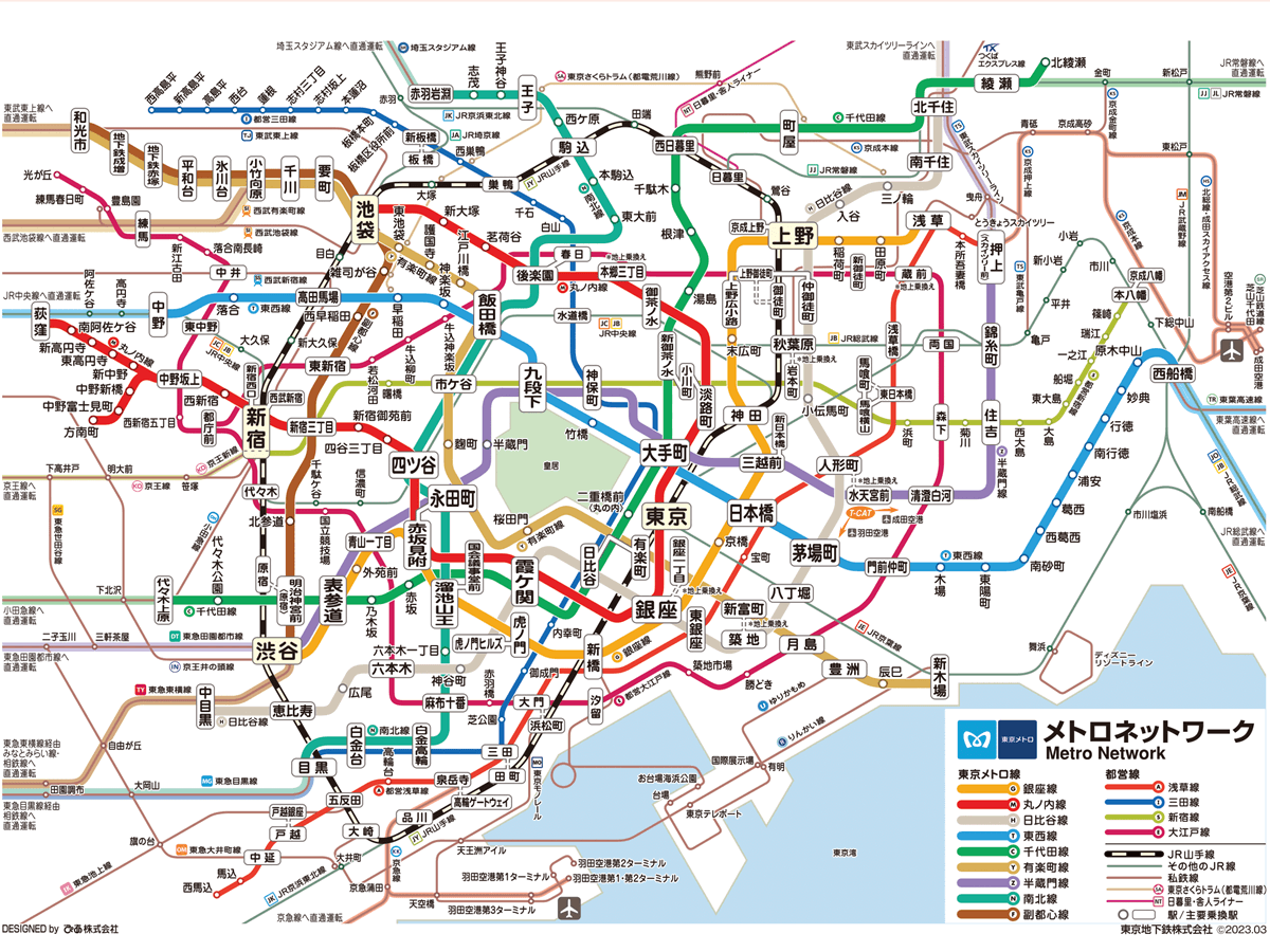 ビジネスの中心地であるエリアも、地下鉄が網羅しています。東京駅・大手町周辺は丸ノ内線で池袋・新宿方面へ、東西線で千葉方面へ、あらゆる方向へ分散できます。